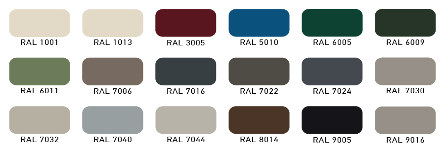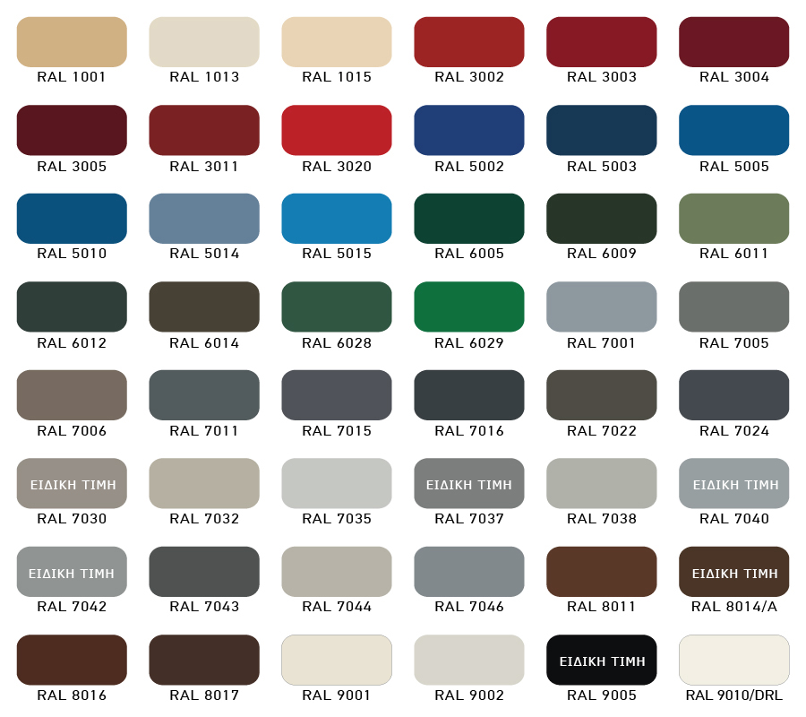 Μια πολυτελή και εμπλουτισμένη παλέτα χρωμάτων διατίθεται από την Europa, όπου μπορείτε να επιλέξετε το χρώμα της αρεσκείας σας μεταξύ μιας μεγάλης γκάμας αποχρώσεων, RAL, MAT, SPECIAL EFFECT, METALLIC και Αποχρώσεις Ξύλου, και είναι στη διάθεση των καταναλωτών ικανοποιώντας κάθε αισθητική και αρχιτεκτονική επιθυμία.